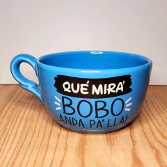 Descubre el genial Tazón "Que mira bobo" de Mirakebueno!, un diseño único que alegrará tus momentos de café o té. Con una capacidad de 450 cc, es ideal para disfrutar de tus bebidas favoritas.